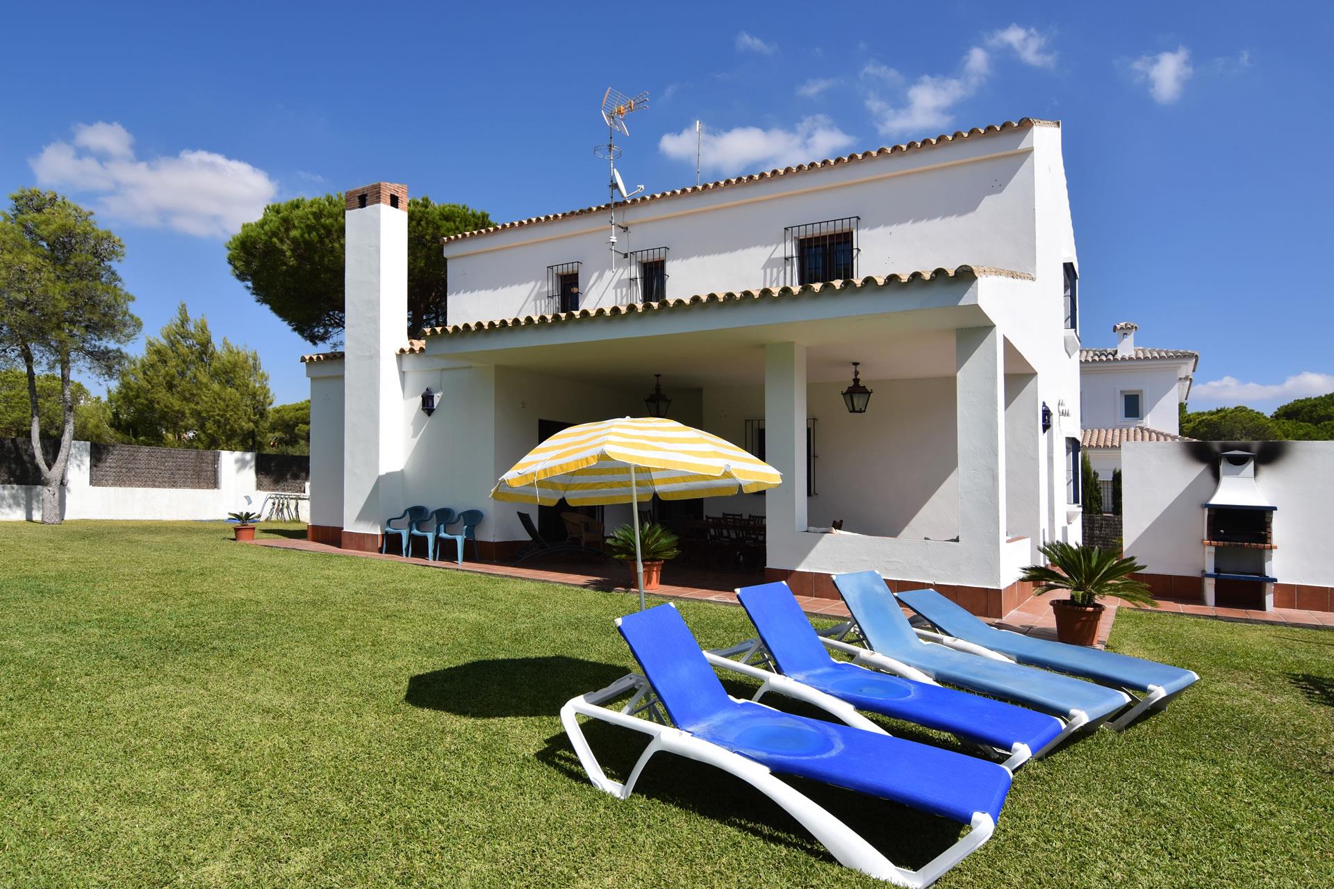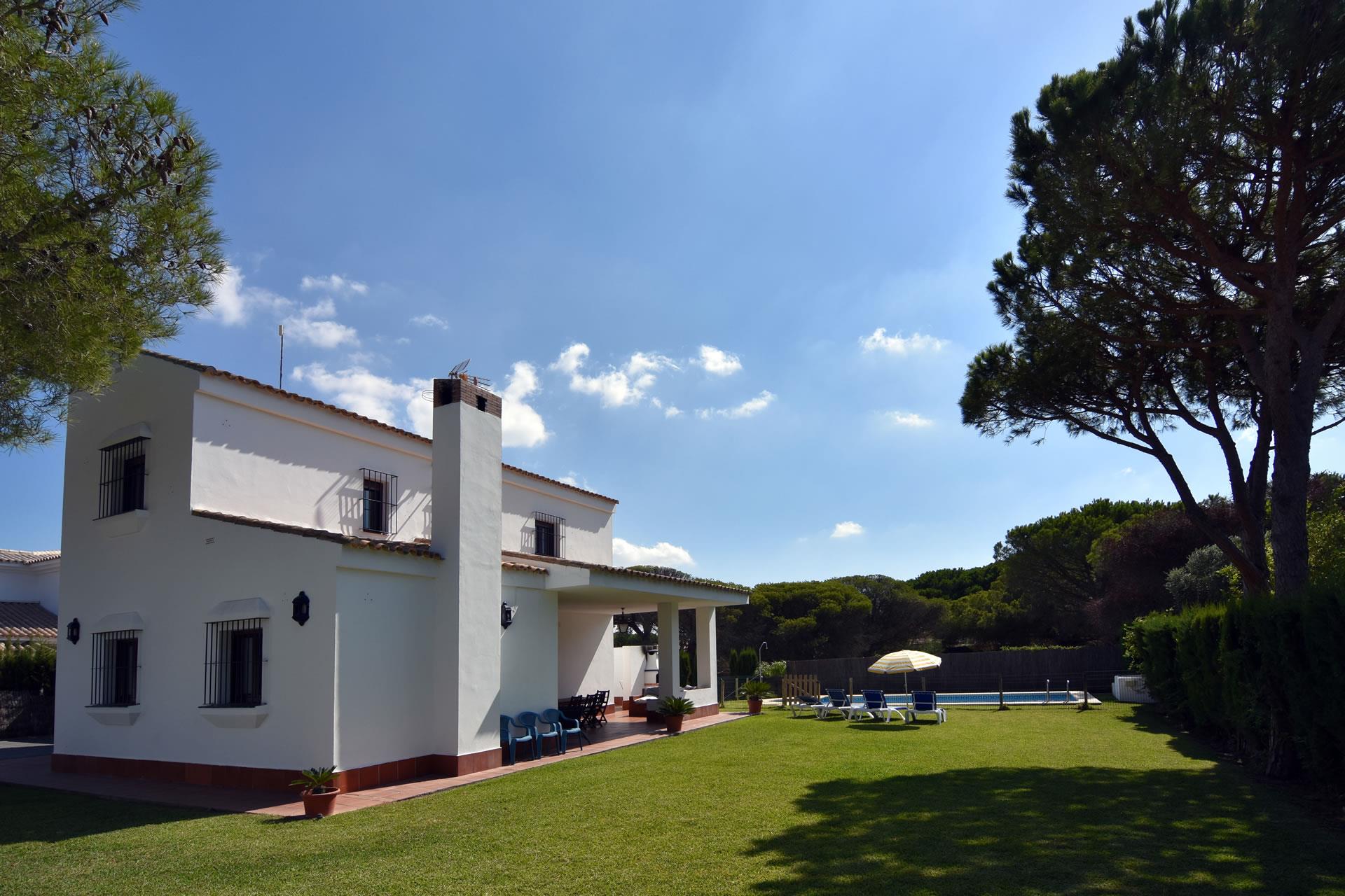Dies ist eine prachtvolle Villa, gelegen im regional sehr bekannten Villenviertel Roche, einer waldreichen Gegend mit Pinien, angrenzend ans Meer. Die berühmten Sandstrände der Costa de la Luz, ein kleiner Supermarkt, Restaurant, Bar und Zeitungskiosk liegen nur 5 Fußminuten von der Villa entfernt.