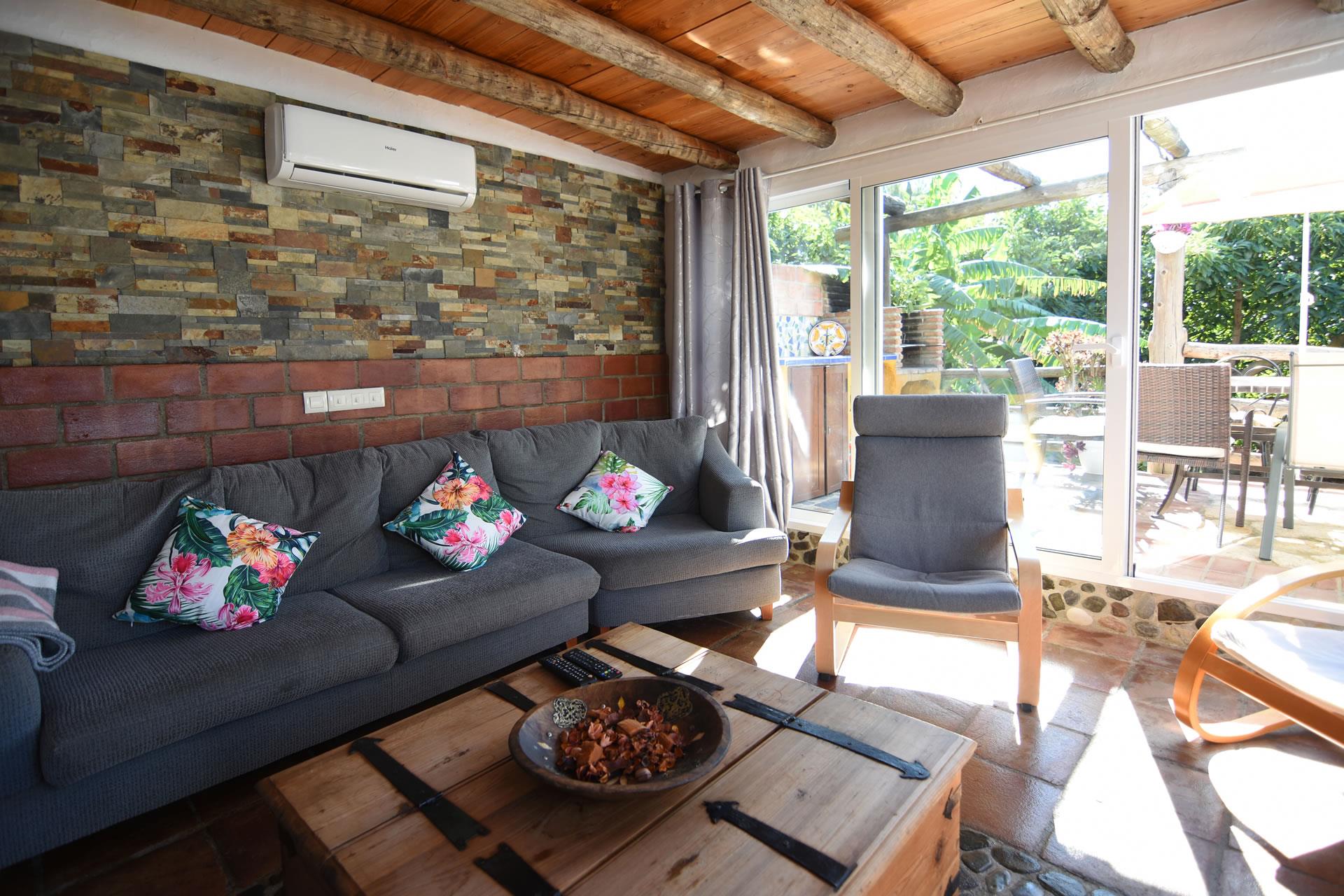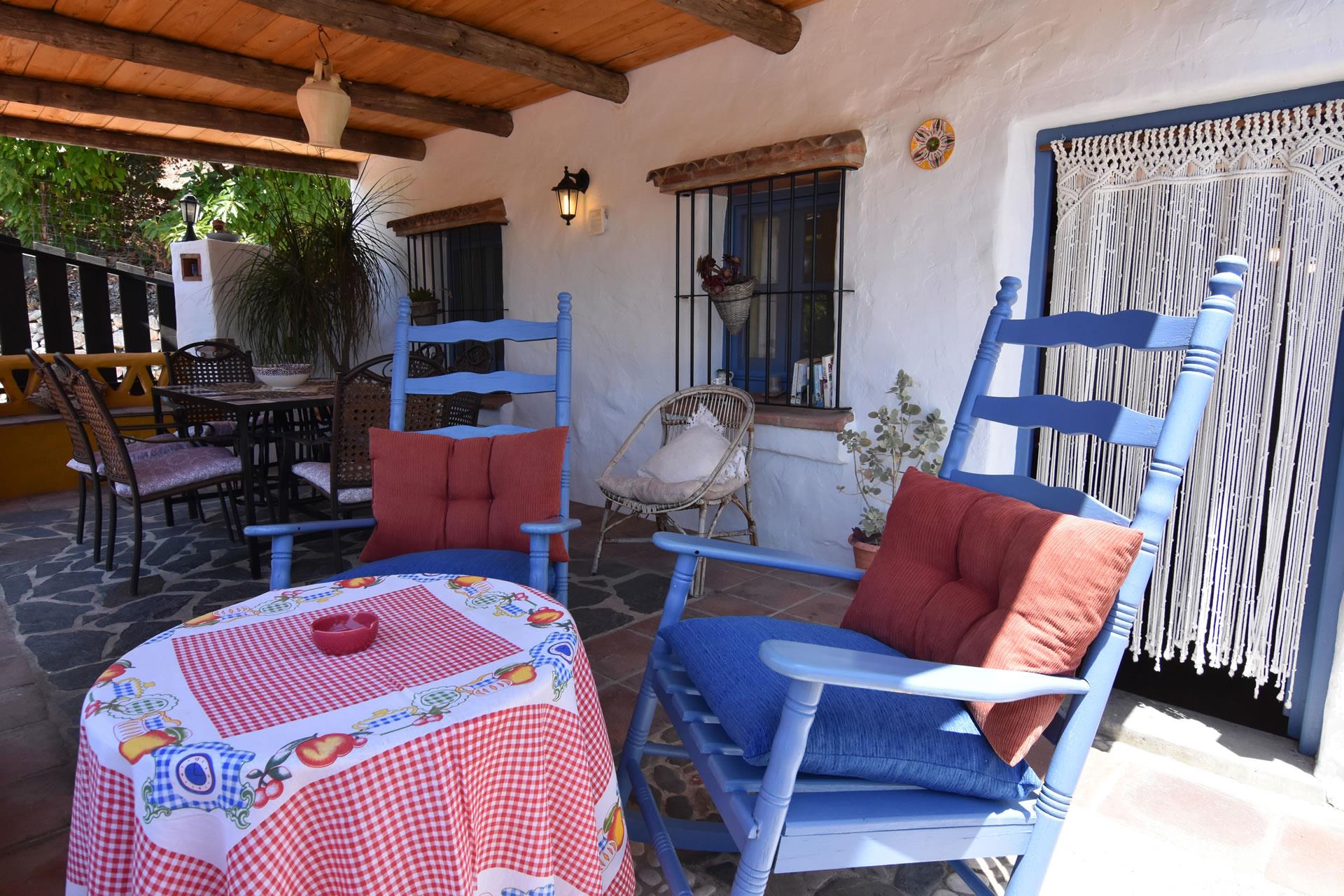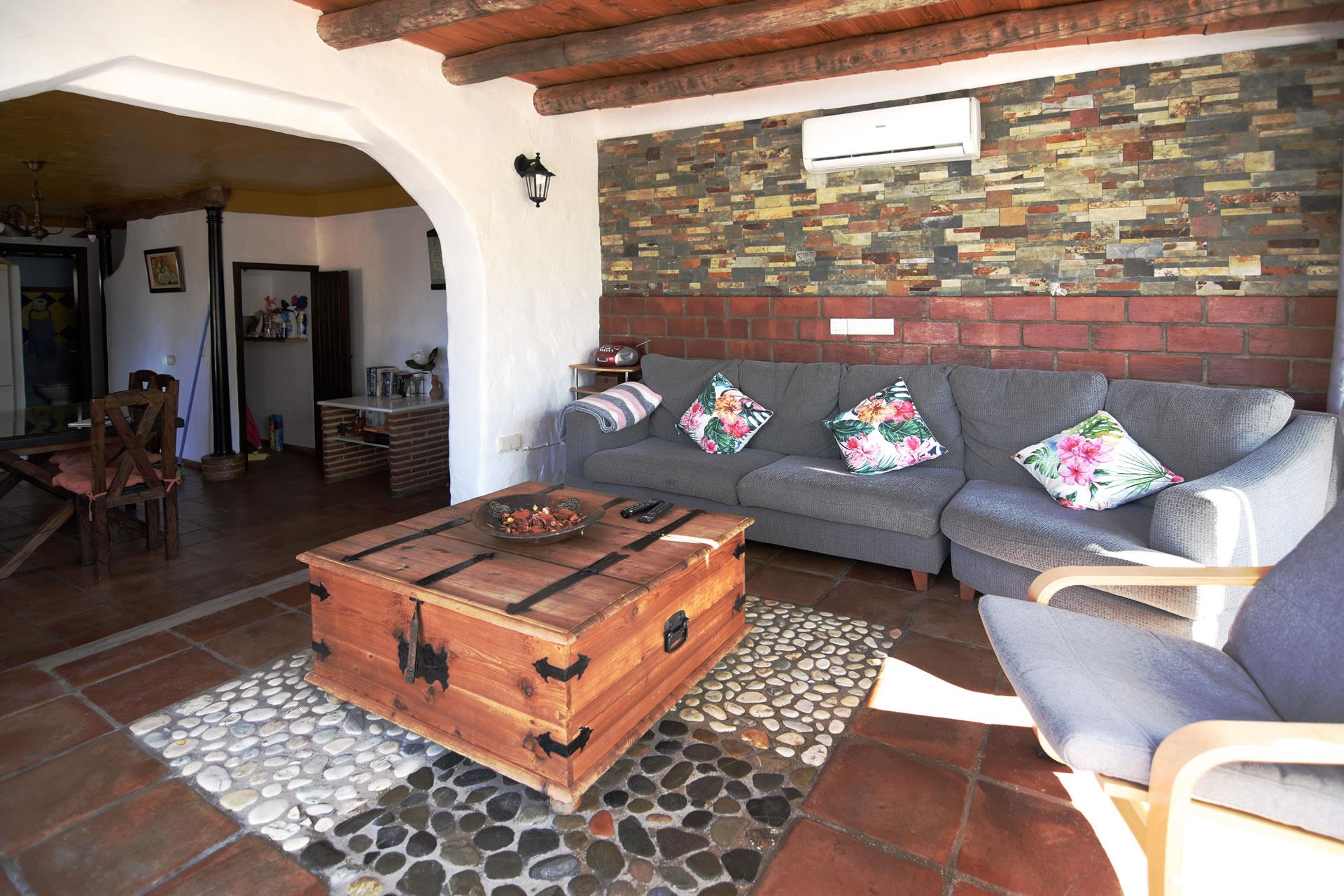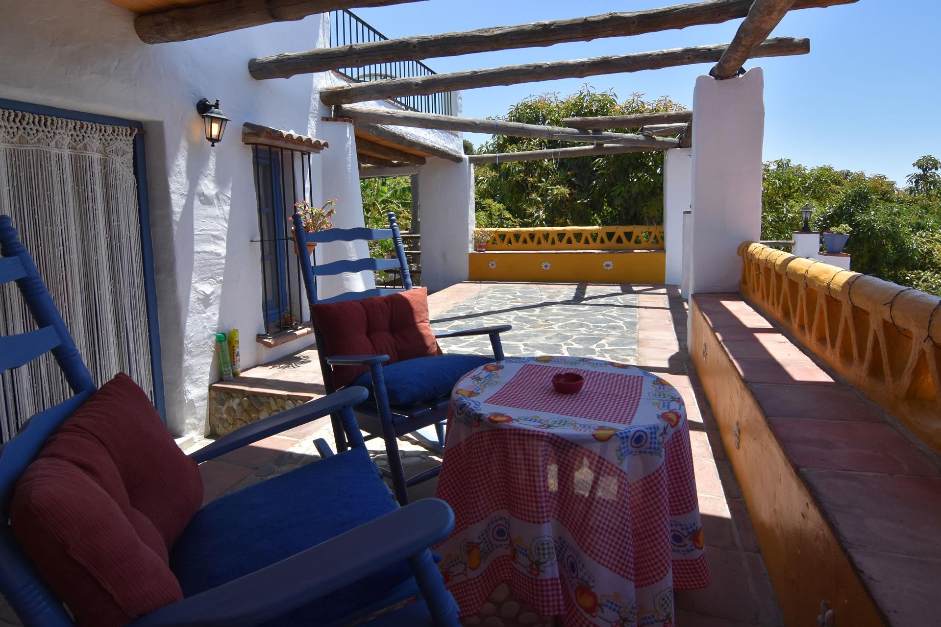 Dieses charmante Bauernhaus liegt nur ein paar Gehminuten von Frigiliana entfernt, wo Sie eine Menge von Restaurants, Tapa-Bars und von Familien geführte Läden finden. Trotzdem liegt es sehr ruhig, inmitten von Oliven- und Avocado-Bäumen und hat eine vollkommene Privatsphäre. Dieser cortijo hat seinen andalusischen Baustil erhalten: dicke Außenmauern, Holzbalkendecken und mit Ocker- und himmelblauer Farbe dekoriert — moderner Komfort … mit traditionellem ländlichen Charme.