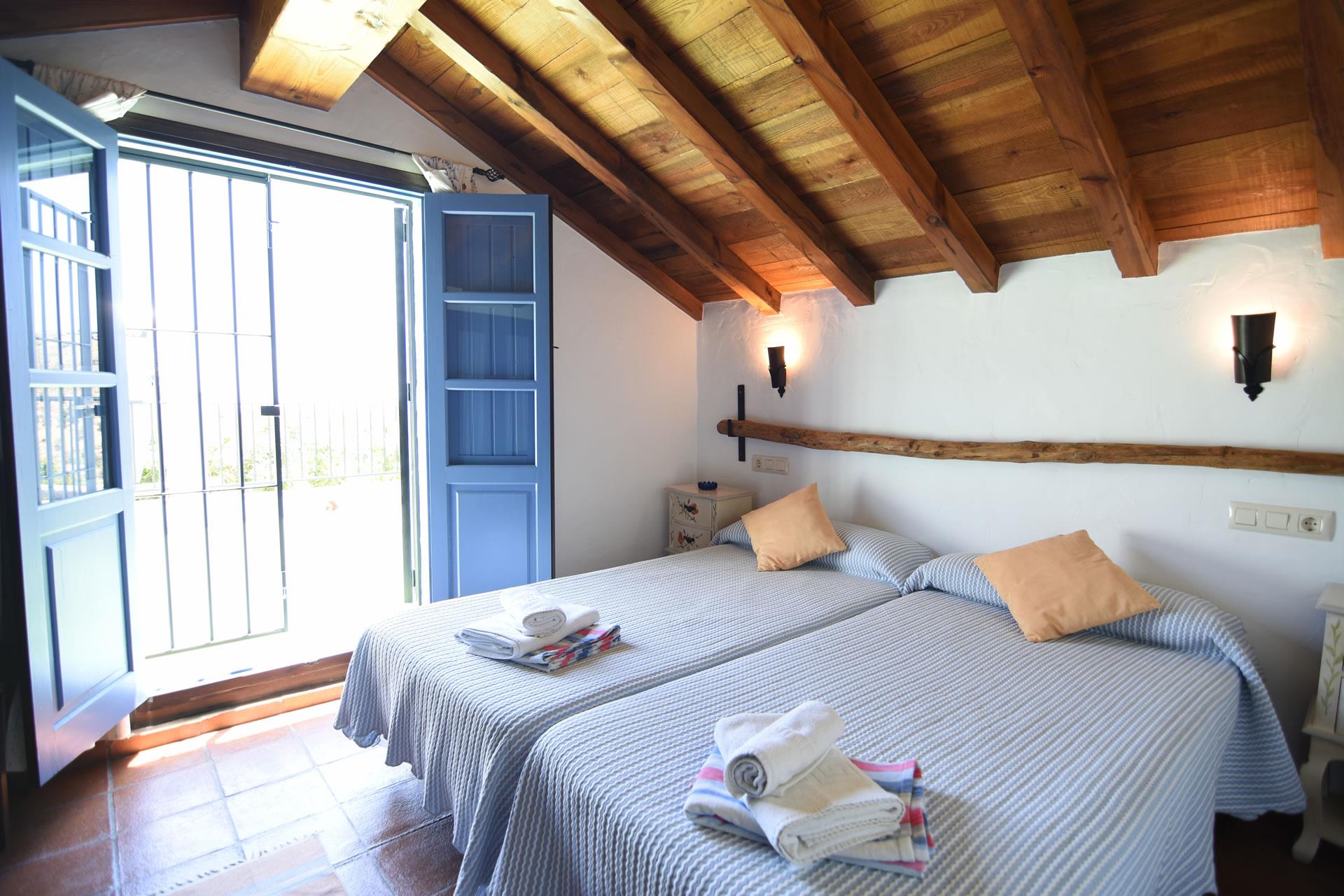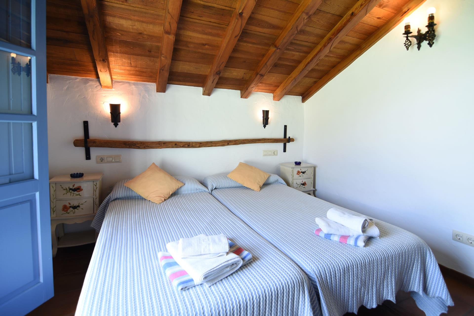 Im ersten Stock findet man zwei romantische Schlafzimmer mit jeweils 2 Einzelbetten, Holzdecken und großen Schränken. Das gemeinsame Badezimmer besitzt eine Sprudelbadewanne, WC und ein Waschbecken.