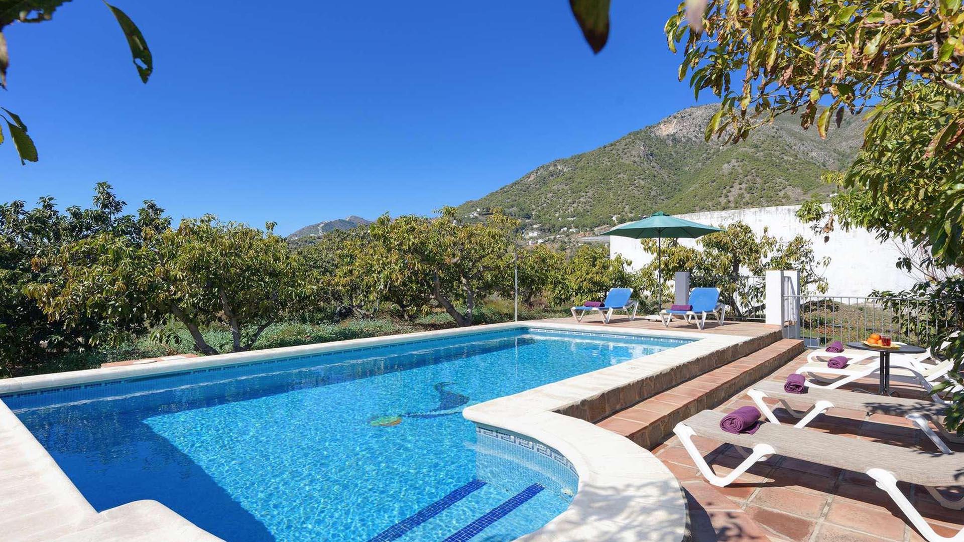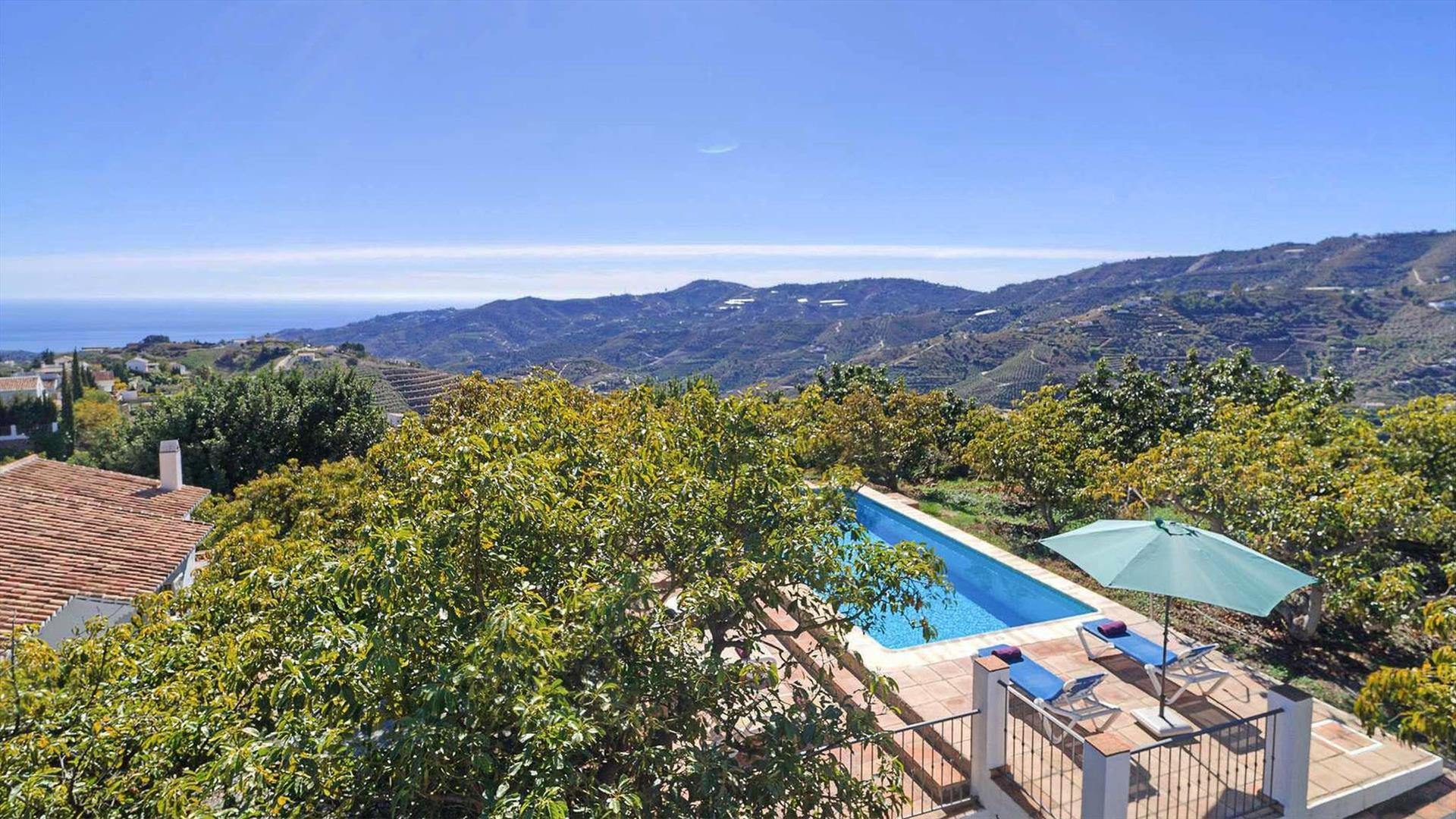 Diese komfortable und idyllisch im andalusischen Hinterland gelege Villa ist geräumig, luftig und bietet von ihrer Frontterrasse aus eine spektakuläre Aussicht. Der Ort Frigiliana ist in 15 Minuten Fußweg zu erreichen. Ein gutes Restaurant liegt nur 5 Minuten entfernt. Hinter dem Haus befindet sich auf einer höher gelegenen Ebene ein privater Swimmingpool samt Sonnenterrasse. Die Unterkunft ist sehr geschmackvoll eingerichtet und durchweg gut ausgestattet.