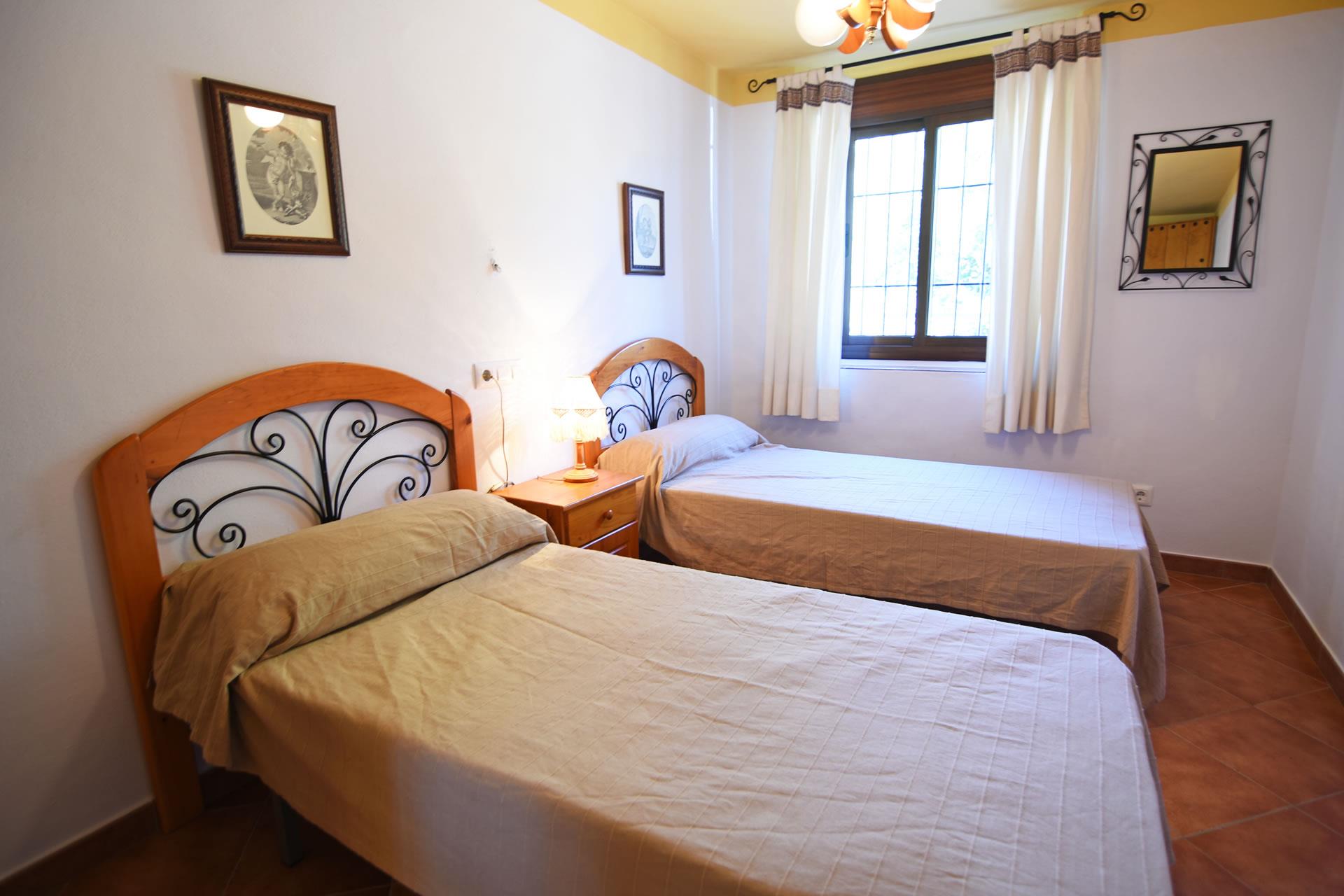 - Schlafzimmer mit 2 Einzelbetten und Ventilator