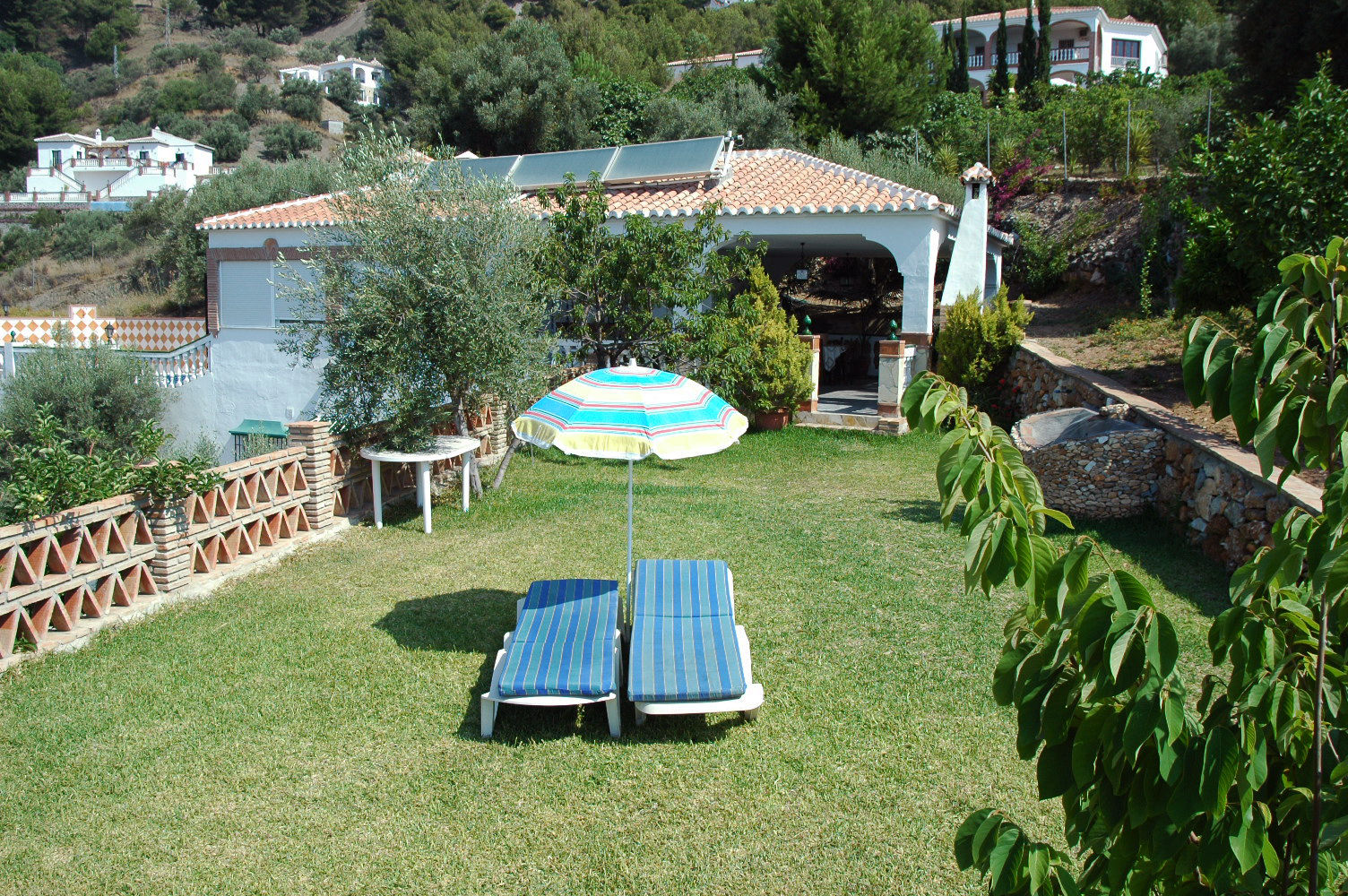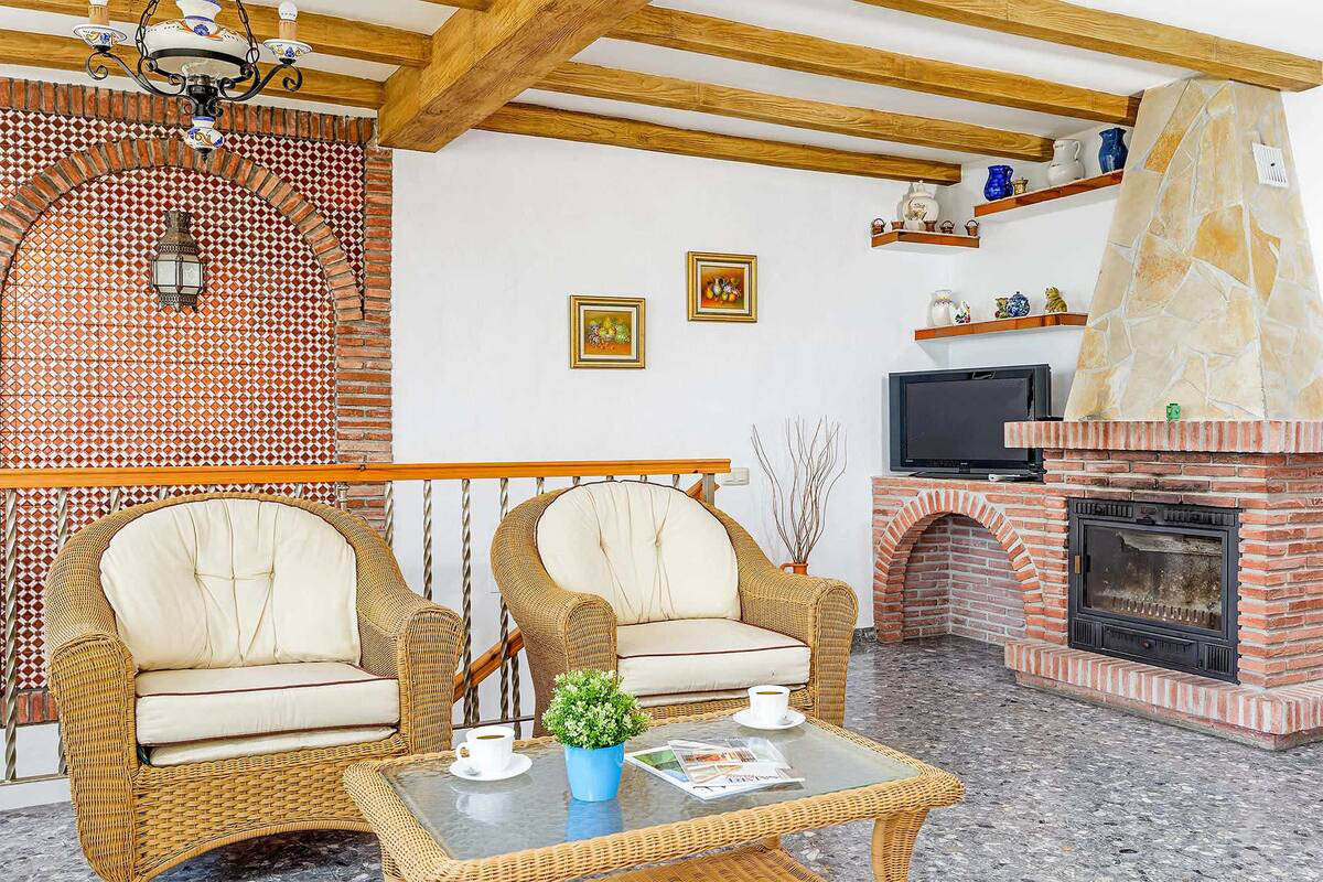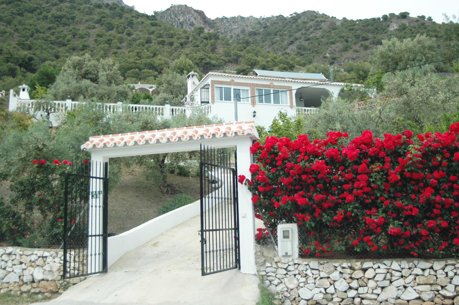 Das Haus schmiegt sich in einer die Umgebung überblickenden Höhe an einen Hügelhang, besitzt einen wundervollen, ruhigen Außenbereich und einen unvergleichlichen Ausblick. Ihre Mahlzeiten unter freiem Himmel werden Sie auf der hübschen Veranda mit dem angrenzenden, auf Rasen angelegten Obstgarten sicherlich am meisten genießen. Der attraktive vor Blicken geschützte Bereich des Swimmingpools (8 x 3 m) hat ebenfalls einen einzigartigen Blick. Die Umgebung ist sehr friedvoll und nur 5 Autominuten von Frigiliana (6 km) entfernt. Die Stadt Nerja, mit ihren berühmten Stränden und betriebsamem Zentrum erreicht man mit dem Auto in 15 Minuten (12 km). Eine gut geteerte Straße erleichtert die Zufahrt zum Haus und macht es zu einem perfekten Refugium, das man als Stützpunkt für Erkundungsfahrten nach Granada, Málaga und in die weißen Dörfer der Axarquia-Region nutzen kann.