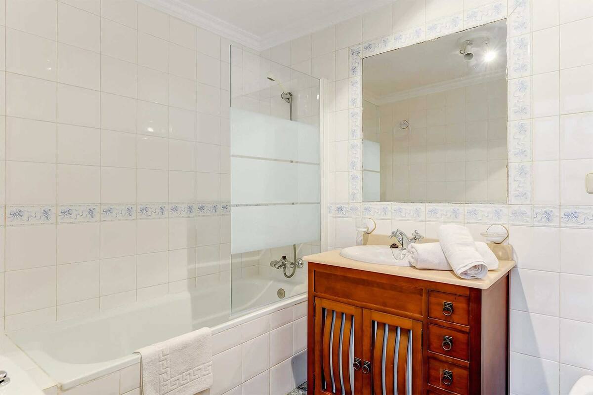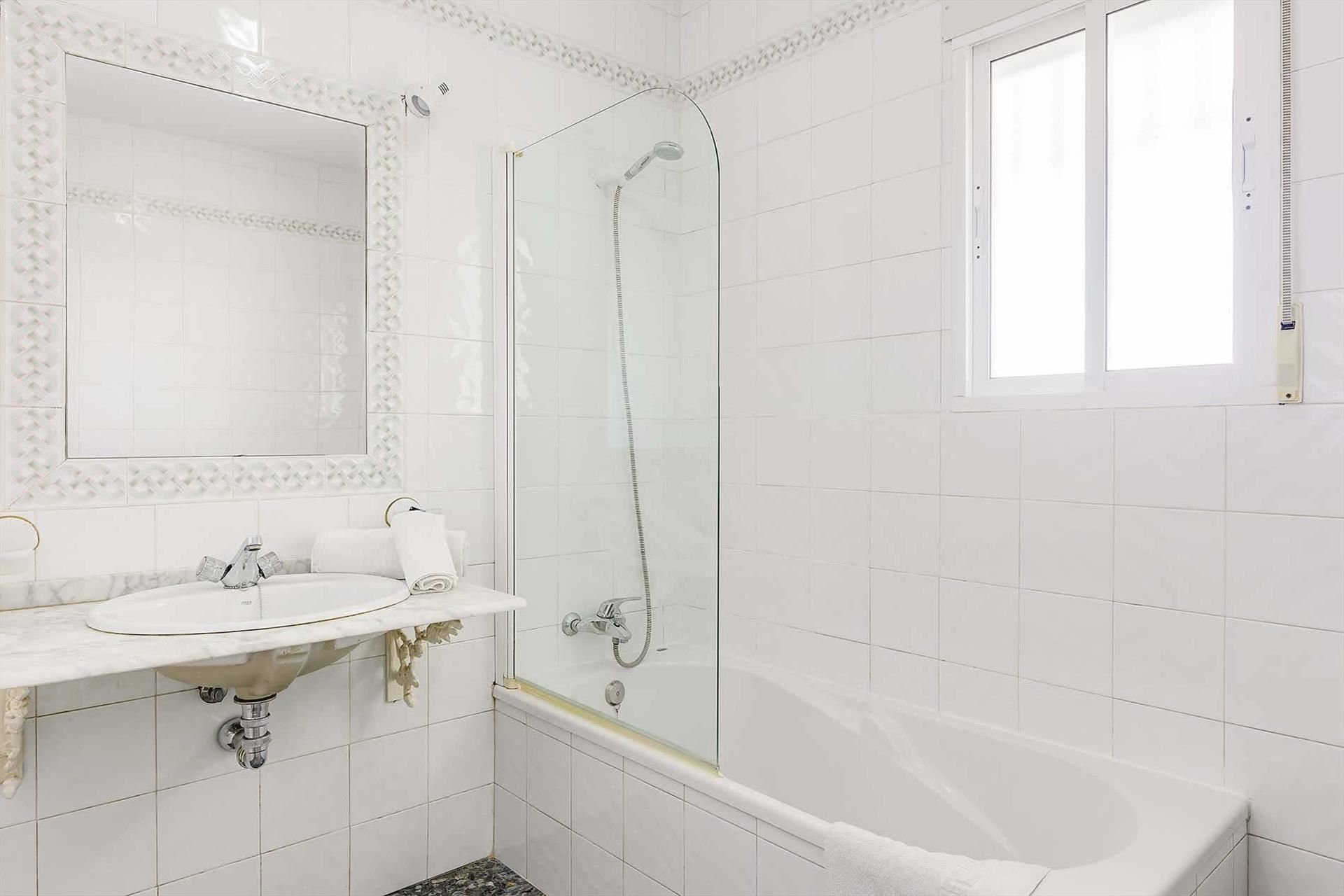 - 2 Badezimmer jedes mit Einzelwaschbecken, Duschbadewanne und Toilette