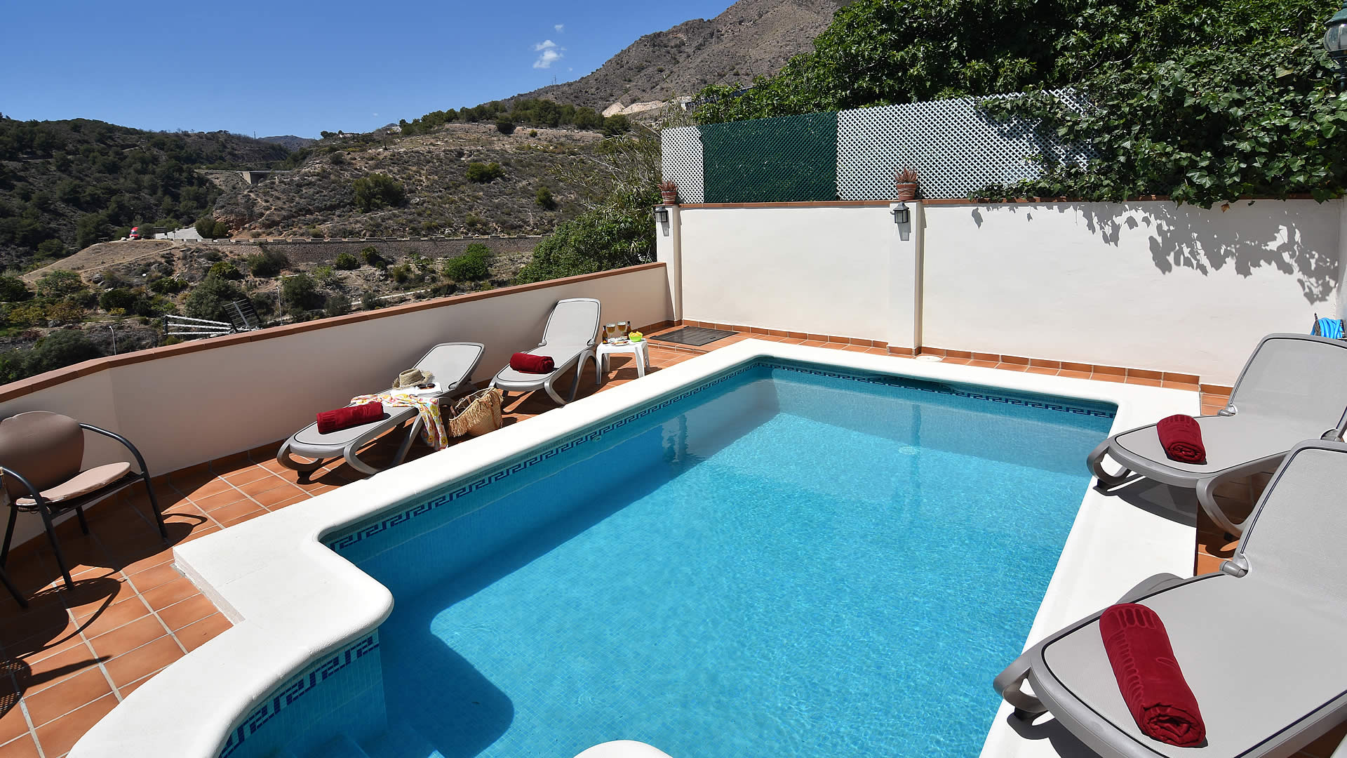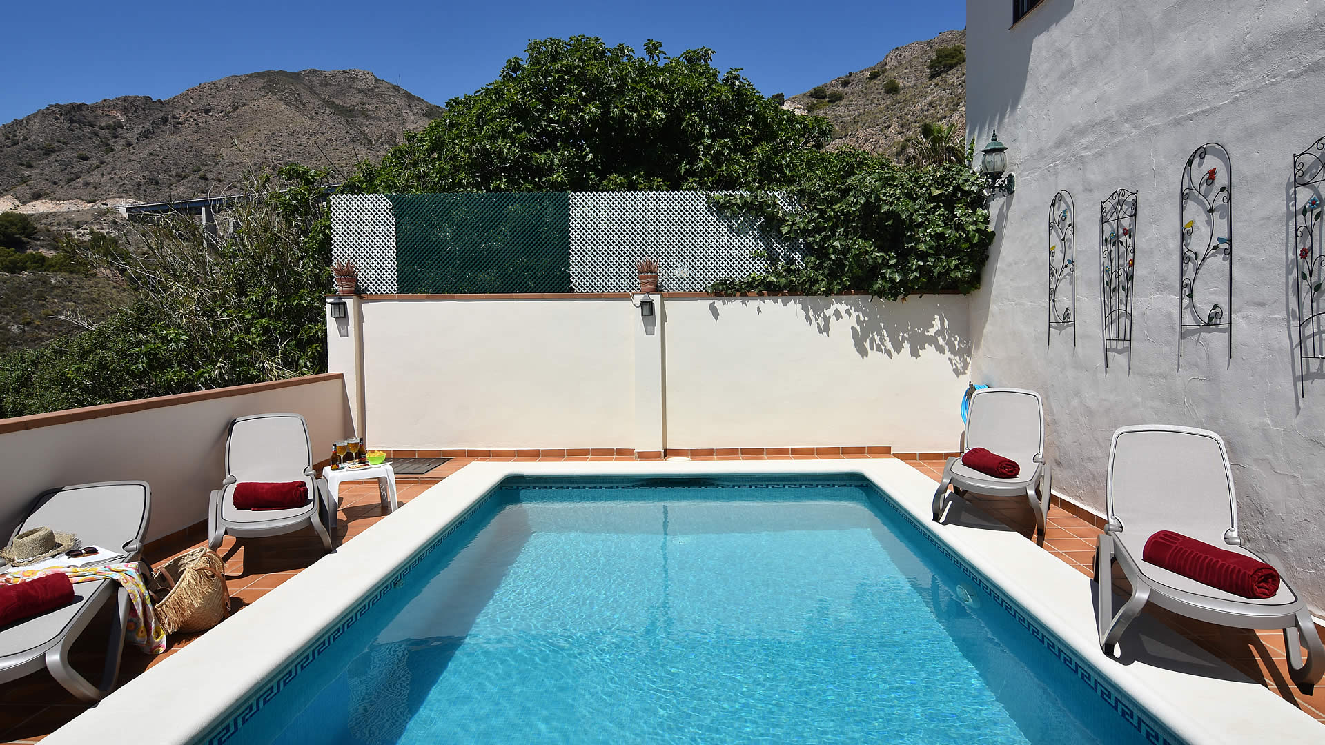 Dies ist ein charmantes Häuschen in andalusischem Stil, mit grandioser Aussicht aufs Meer. Von Ihrem Balkon und dem eigenen Schwimmbecken aus können Sie die gesamte Küste überblicken, und innerhalb weniger Gehminuten gelangen Sie zum wunderbar ruhigen Strand! Der ummauerte Innenhof (Patio) lädt ein zum gemütlichen Grillabend, oder Sie besuchen eines der kleinen, feinen Restaurants in Maro oder Nerja. In diesem Haus werden Sie unvergessliche Ferien in idyllischer Umgebung verleben.