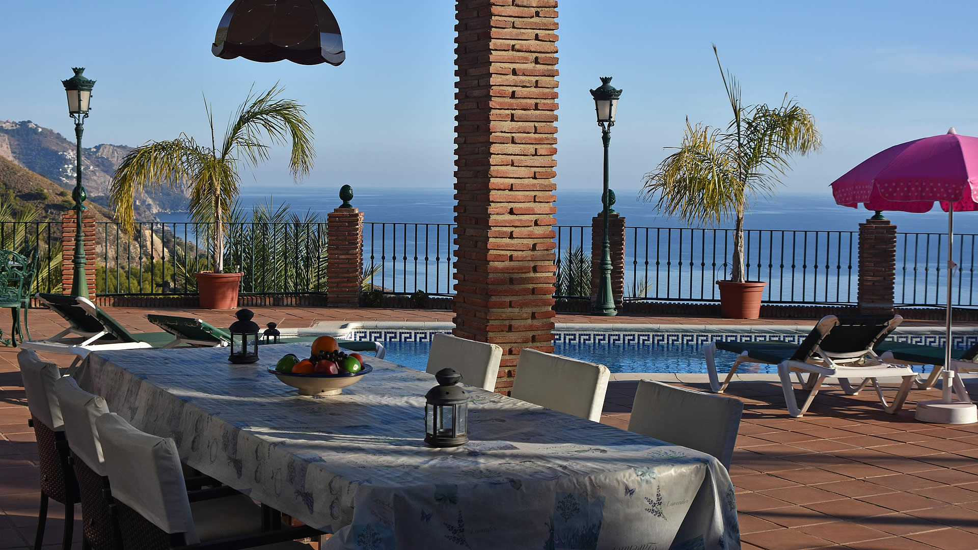 Grosse und komfortable Villa in Maro, Costa del Sol, Spanien mit privatem Pool für 6 Personen. Das Haus liegt in einer ländlichen und bergischen Umgebung und etwa 2 Km entfernt vom Strand von Molino de Papel.
