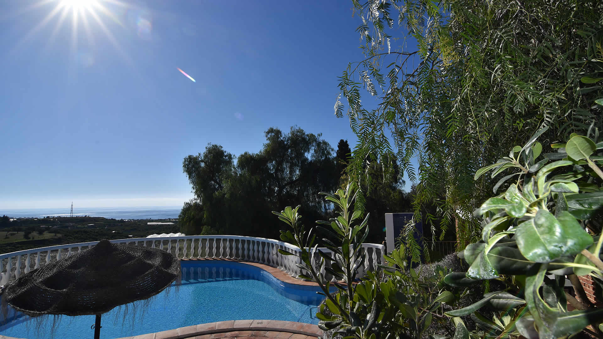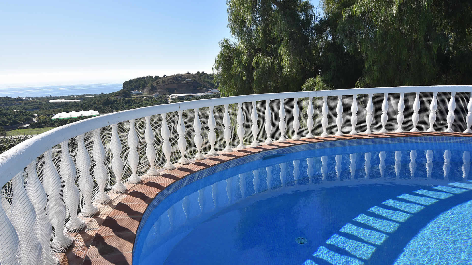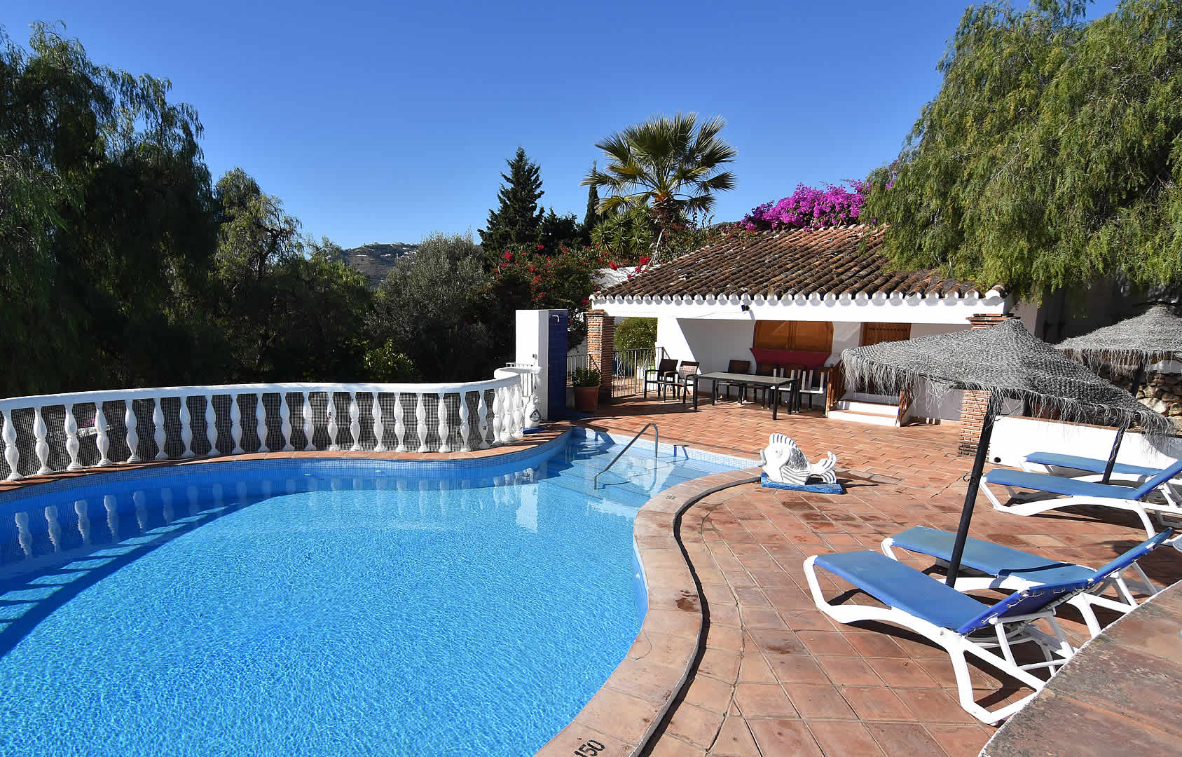 Diese Villa liegt ungefähr 2 Km nördlich von Nerja und nur eine kurze Fahrt von seiner belebten Innenstadt entfernt, in der Sie zahlreiche Tapas-Bars und Restaurants für jeden Geschmack finden. Der nächste Strand (3 Km) liegt nur 10 Minuten Fahrzeit entfernt. Das Refugium verfügt über eine private Einfahrt, die auf einem großzügigen Parkplatz endet. Ein weitläufiger, üppiger Garten umgibt die Villa. Von der Veranda aus, die nach Süden ausgerichtet ist, werden Sie den hervorragenden Ausblick über die umliegende Landschaft bis hin zum Mittelmeer genießen. Der private Pool in Fischform (6x12 m) liegt ein paar Stufen weiter unten und ist von Sonnenliegen und Schirmen umgeben. Ferner gibt es ein kleines Poolhaus. Lust auf einen Tagesausflug? Die Alhambra in Granada oder das Picasso-Museum in Málaga sollten Sie auf keinen Fall verpassen. Möchten Sie lieber die weißen Dörfer Andalusiens besuchen, so sollten Sie unbedingt ins nahe gelegene Frigiliana, nach Cómpeta oder in eines der anderen Dörfer in der Region Axarquía fahren.