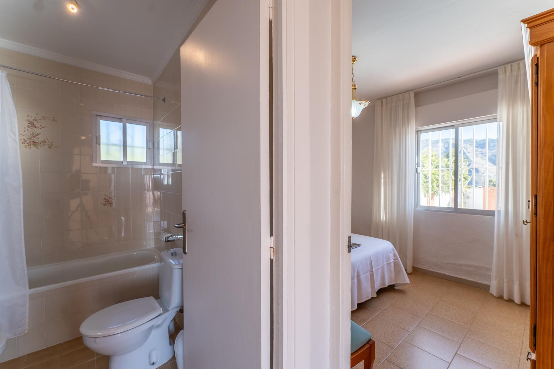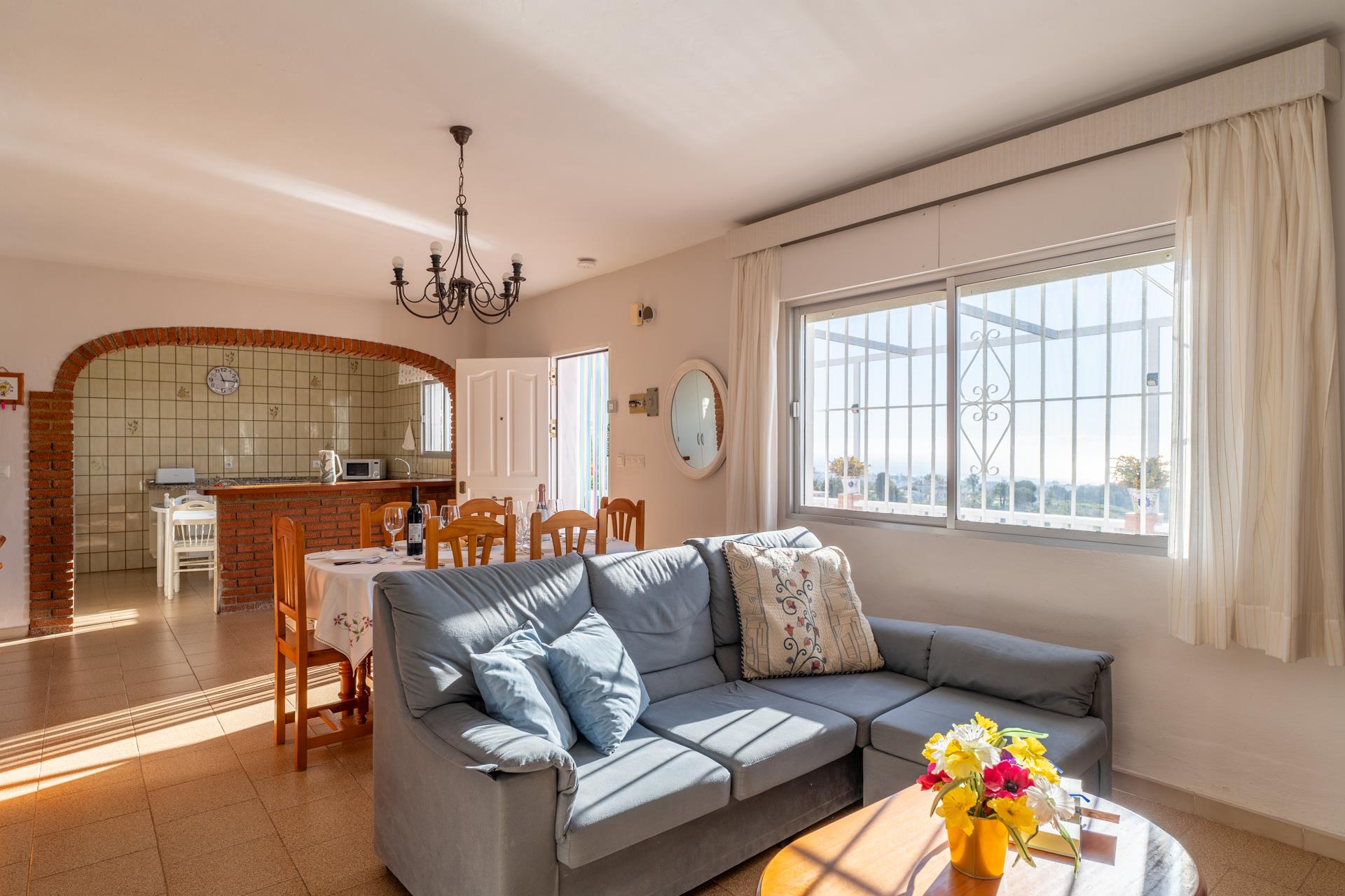 Eine Avocado-Plantage auf der Rückseite des Hauses sorgt für Privatsphäre und die herrliche Terrasse vor dem Haus hat einen überwältigenden Ausblick auf Nerja und das Mittelmeer. Sonnensüchtige wird dieses Haus sicherlich begeistern, denn es ist nach Süden ausgerichtet. Innen ist es mit viel Sorgfalt im Provence-Stil eingerichtet.