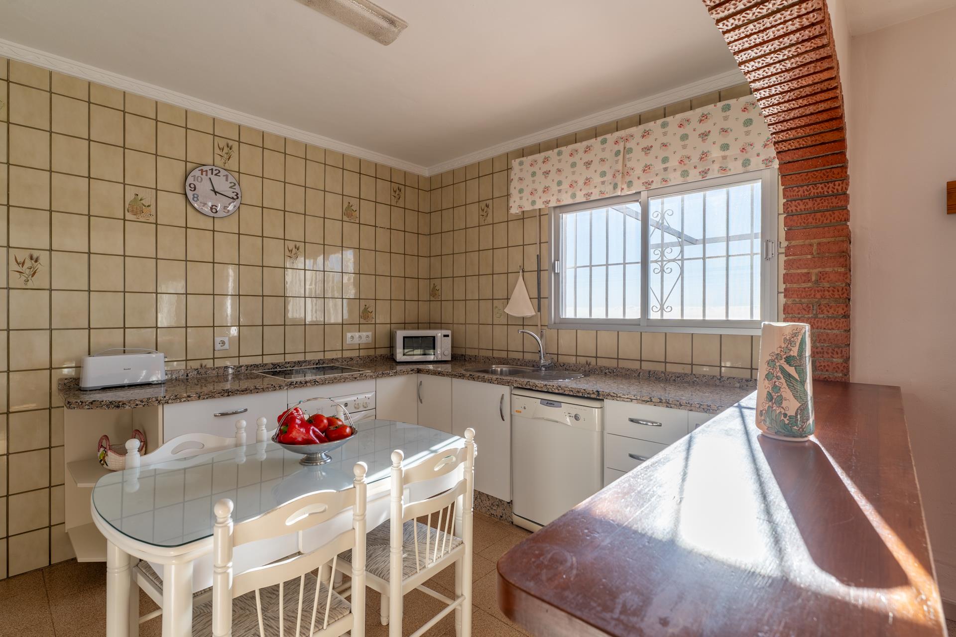 Dieses Ferienhaus liegt in der Gegend von Tablazos, auf halbem Weg zwischen Nerja (3 km) und Frigiliana; beide Ortschaften kann man in 5 Minuten Autofahrt erreichen. In diesem Haus hat man nicht nur das Beste des Landlebens, sondern auch Stadt und Strand gleich in der Nähe. Eines der Highlights ist die großzügige Terrasse vor dem Haus mit ihrem atemberaubenden Blick auf Nerja und das Meer – das ist der Platz, an dem Sie Ihre Mahlzeiten im Freien genießen werden. Ein Grill ist vorhanden. Der Poolbereich (7m x 4m und 1,5 - 2m tief) ist mit Liegestühlen ausgestattet und bietet die gleiche großartige Aussicht wie die vordere Terrasse. Auf der Rückseite des Hauses, führt der Eingang durch eine Avocado-Plantage; Gästen ist es erlaubt, Früchte für den eigenen Verzehr zu pflücken.
