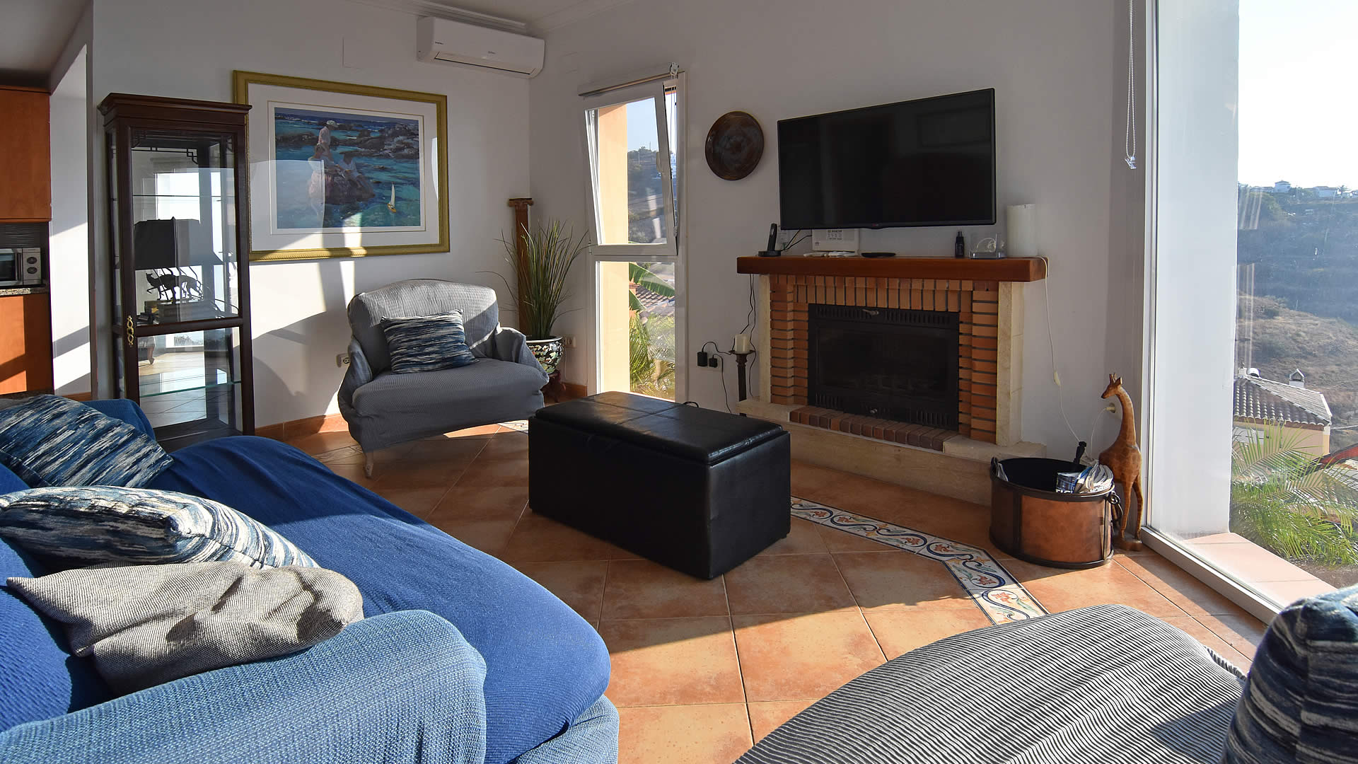 - Wohnzimmer mit Klimaanlage, Fernsehen und Deckenventilator