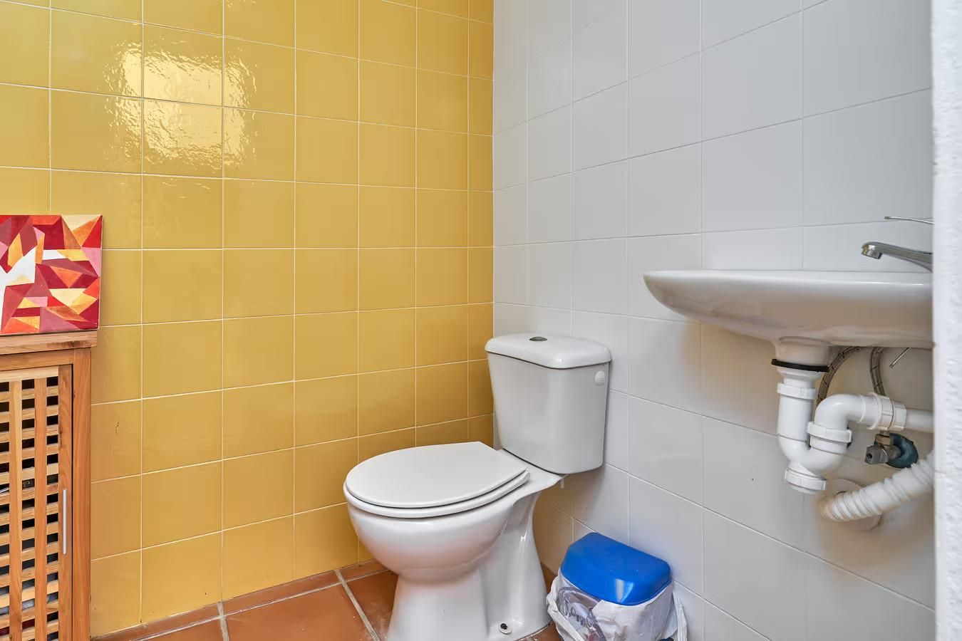 - Badezimmer mit Einzelwaschbecken und Toilette
