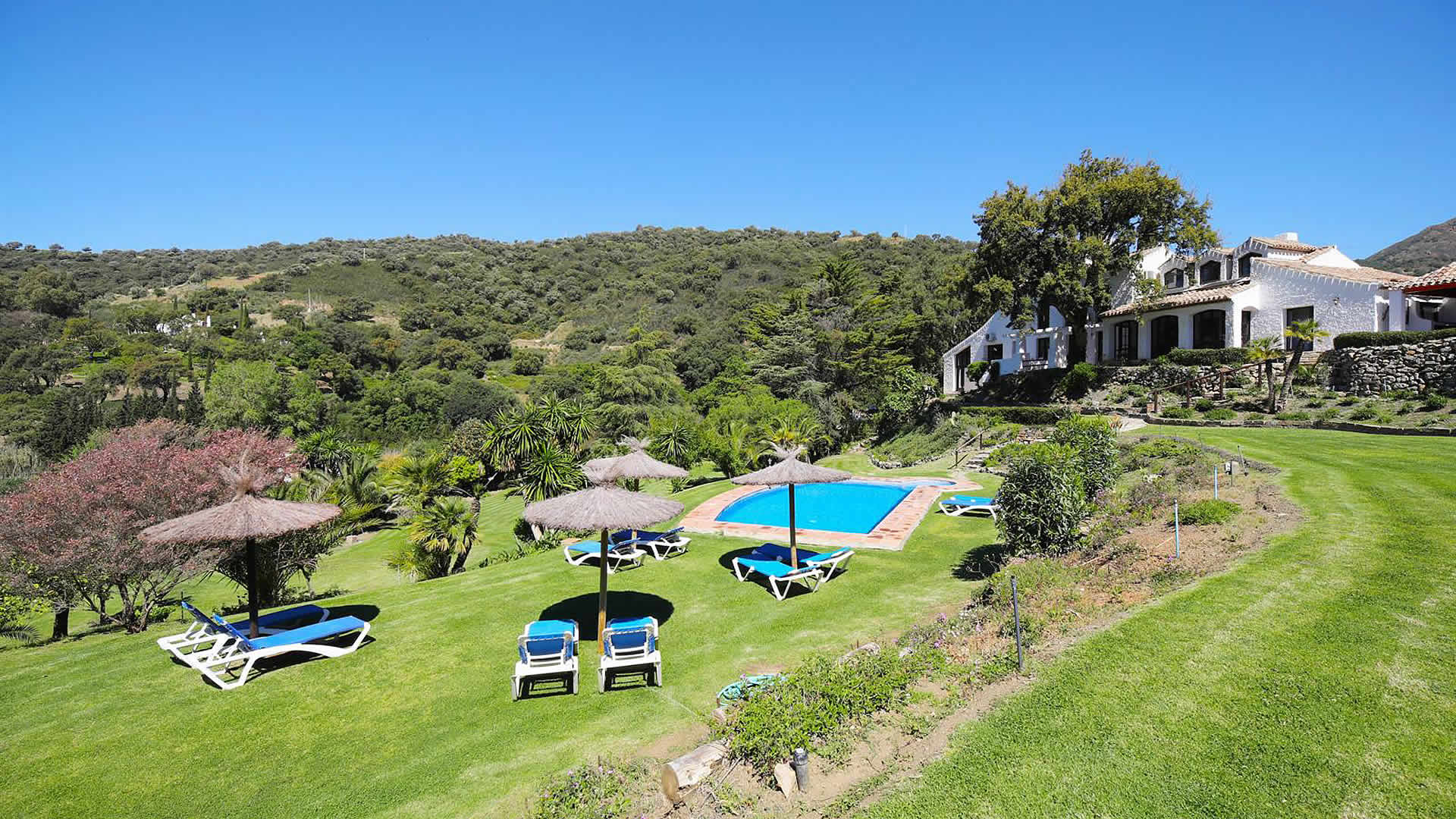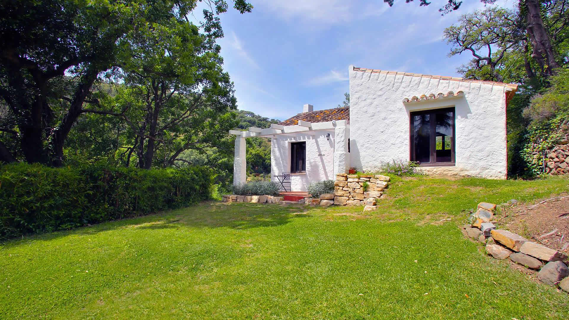 Die Hacienda entspringt dem Entwurf eines südafrikanischen Architekten, der sich in Andalusien verliebte und beschloss, hier seine architektonischen Vorstellungen in einer äußerst geschmackvollen Weise zu verwirklichen. Vier der fünf Häuser liegen in einem ehemaligen Landgut, in dessen Mitte ein rundes Schwimmbecken eingelassen ist. Das fünfte Haus hat nur 1 Schlafzimmer und liegt etwas abseits auf einem tiefer gelegenen Teil des Anwesens. Jede Villa hat eine Sonnenterrasse und/oder einen eigenen Patio. Das runde Schwimmbecken eignet sich hervorragend für Familien mit Kindern und ist von üppiger schattenspendender Vegetation umrahmt. Sonnenanbeter werden sich zweifellos für das rechteckige Schwimmbecken begeistern, das sich im tiefer gelegenen Teil befindet, von großen Rasenflächen umgeben ist und eine fantastische Aussicht auf die umliegende bäuerliche Landschaft bietet. Das Landgut liegt in einem hübschen grünen Tal, zwischen Casares und dem Mittelmeer, beide nur 15 Autominuten entfernt, während der Flughafen von Málaga in nur einer Autostunde zu erreichen ist. Die Umgebung bietet eine Vielzahl an Möglichkeiten für die Freizeitgestaltung, wie Wandern, Reiten, Segeln oder Golfen. Sehr zu empfehlen ist ein Tagesausflug zu den "weißen Dörfern" oder nach Gibraltar. Sogar ein Besuch in Tanger wäre möglich!