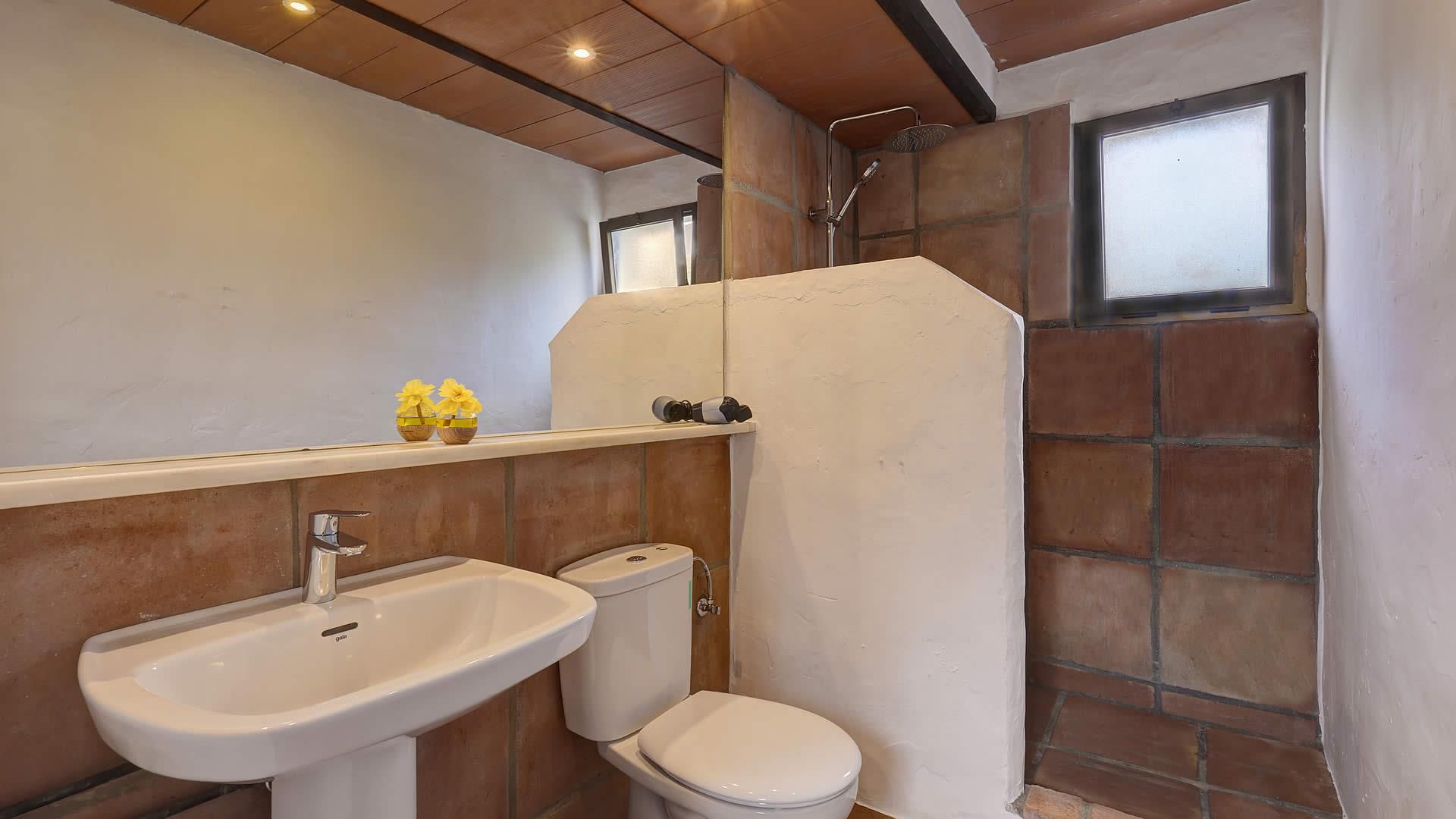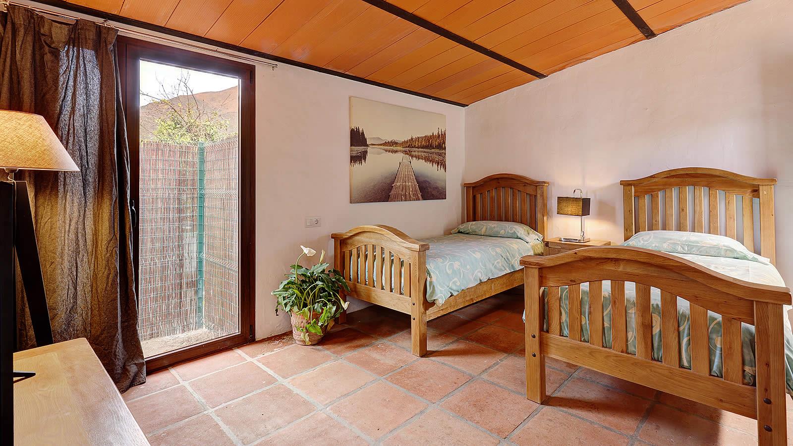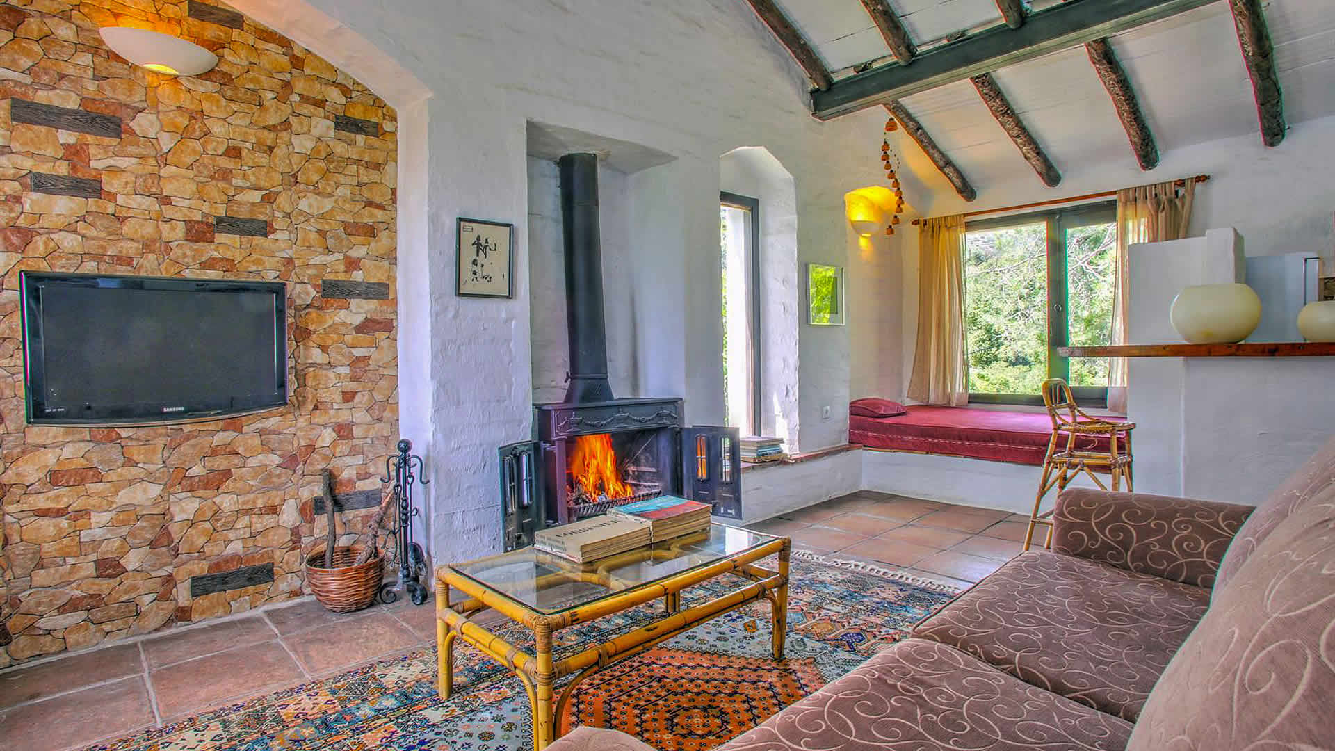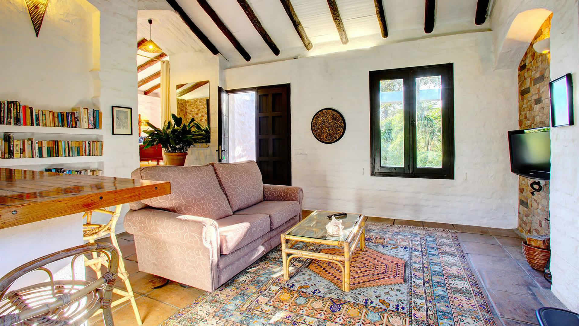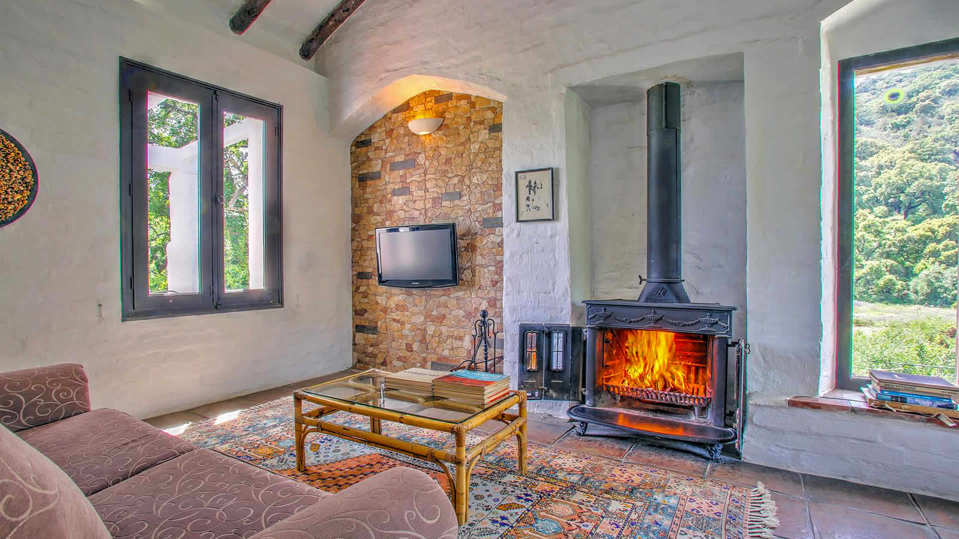 VILLA 4 (2 ERWACHSENE & 1 KIND): Dies war einst die Master-Suite der Besitzer. Heute ist dieses Häuschen der ideale Aufenthaltsort für diejenigen, die Sinn für Romantik haben. Es ist durch eine überdachte Veranda mit dem Haupthaus verbunden und das einzige Haus des Anwesens mit einem Mineralbad. Zum Swimmingpool sind es im wahrsten Sinne des Wortes nur zwei Stufen. Dieses Häuschen besitzt einen eigenen Patio mit dazugehörigem maurischen Springbrunnen, der im Sommer für natürliche Abkühlung sorgt (Sie können natürlich auch auf die Klimaanlage zurückgreifen, wenn Ihnen das genehmer ist). Erwachen Sie im Doppelbett mit Blick auf die Sierra Bermeja. Neben dem Komfort einer Zentralheizung sorgt vor allem der offene gusseiserne Kamin für eine authentische Atmosphäre.