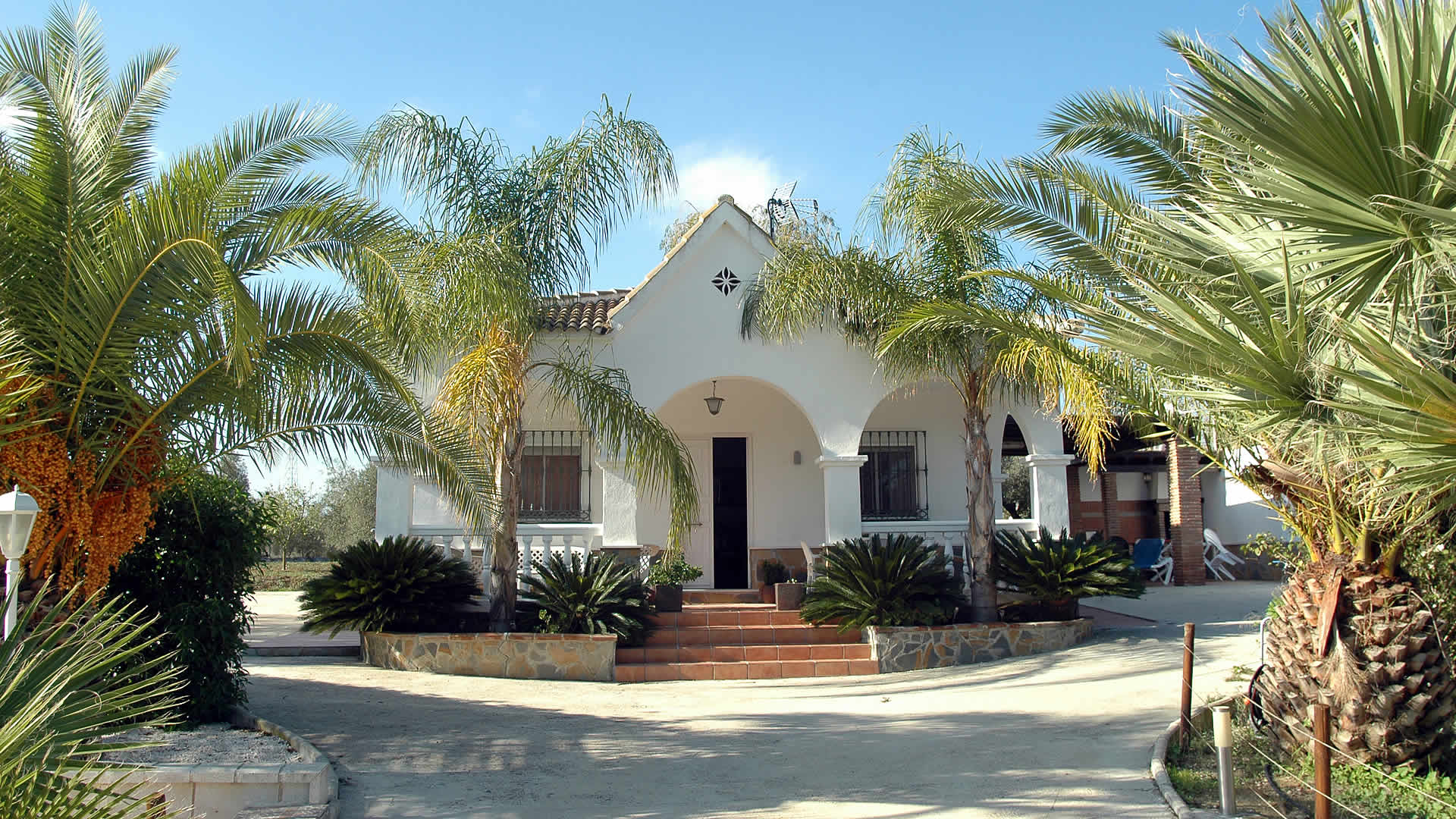Das Häuschen liegt inmitten eines großen Gartens mit Bäumen, Sträuchern und Rasen, und es verfügt über ein herrliches Schwimmbecken (8 x 4 Meter und 1.00m-2.00m tief, umgeben durch Kunstgras). Das Anwesen wird von einer Hecke gesäumt, wodurch Ihre Privatsphäre gewahrt bleibt. Von der Veranda aus bietet sich Ihnen eine hübsche Aussicht über die typische Landschaft, die hier v.a. durch den Anbau von Zitrusfrüchten gekennzeichnet ist. An einer Hausseite steht Ihnen ein eingemauerter Grill zur Verfügung. Das Dorf Coín (3 km), in dem Tapas-Bars, Restaurants und Supermärkte zu finden sind, liegt 5 - 10 Autominuten entfernt.