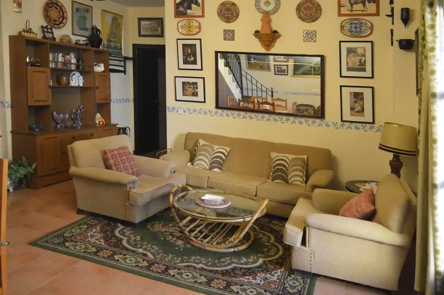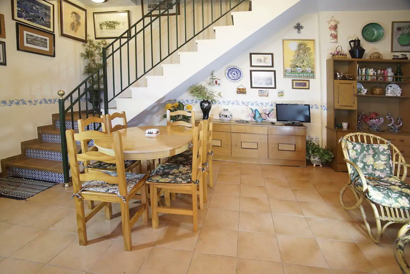 Der ideale Ort, um das einheimische Leben kennen zu lernen; hier trifft man fast nur Einheimische, doch die spanischen Dorfbewohner heißen die Besucher stets herzlich willkommen. Die Besichtigung des reizenden Viertels Santa Cruz in Sevilla ist ein Muss und liegt nur 26 Km entfernt. Die für ihren Wein bekannte Stadt Jerez de la Frontera oder der Nationalpark Coto de Doñana, Europas berühmtestes Küstenfeuchtgebiet, sind ebenfalls in einer Autostunde zu erreichen. Die freundlichen Eigentümer wohnen in dem angrenzenden Haus und stehen Ihnen gerne bei Ihrer Ausflugsplanung zur Seite. Die mit Weinreben bedeckte Veranda samt eingebautem Grill bietet Ihnen Schutz vor der Mittagssonne. Der private Pool befindet sich auf der Terrasse der Eigentümer, wird aber von diesen nicht genutzt.